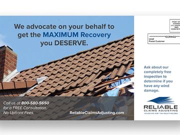 Mailed to homeowners in Naples, Florida, this piece spells out why it is a good move to hire a Public Claims Adjuster to negotiate with their insurance company. The headline on the other side: "Has you claim from Hurricane Irma turned into a disaster?"